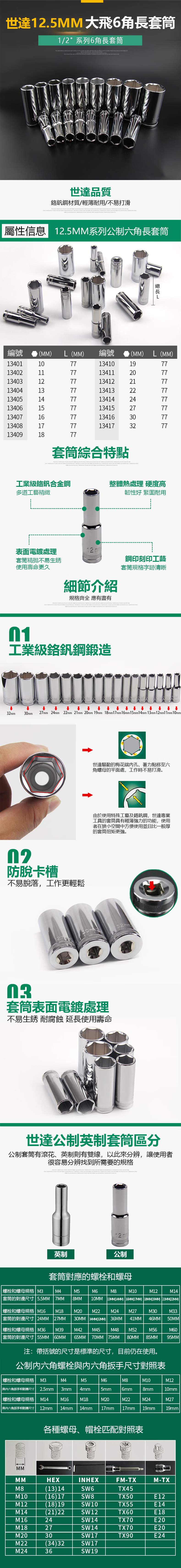 SATA|世達 12.5mm系列6角長套筒 11mm ST13402SC