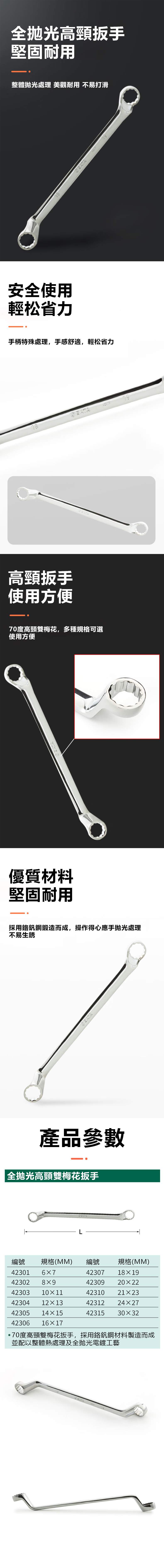 SATA|世達 全拋光高頸雙梅花扳手 21*23mm ST42310