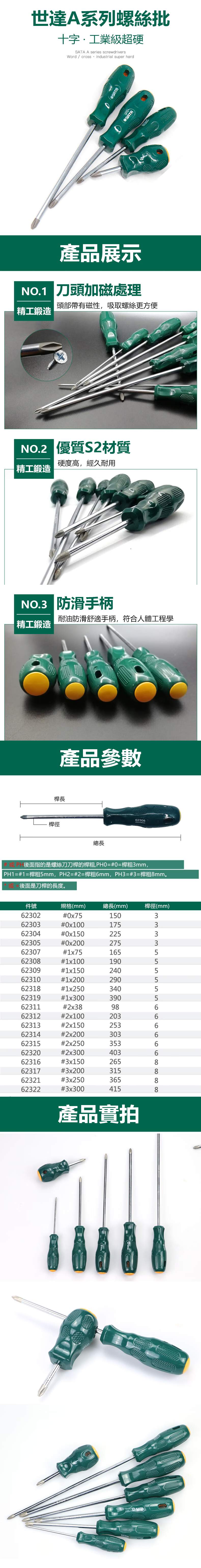 SATA|世達 A系列十字形螺絲批 #3*200mm ST62317SC