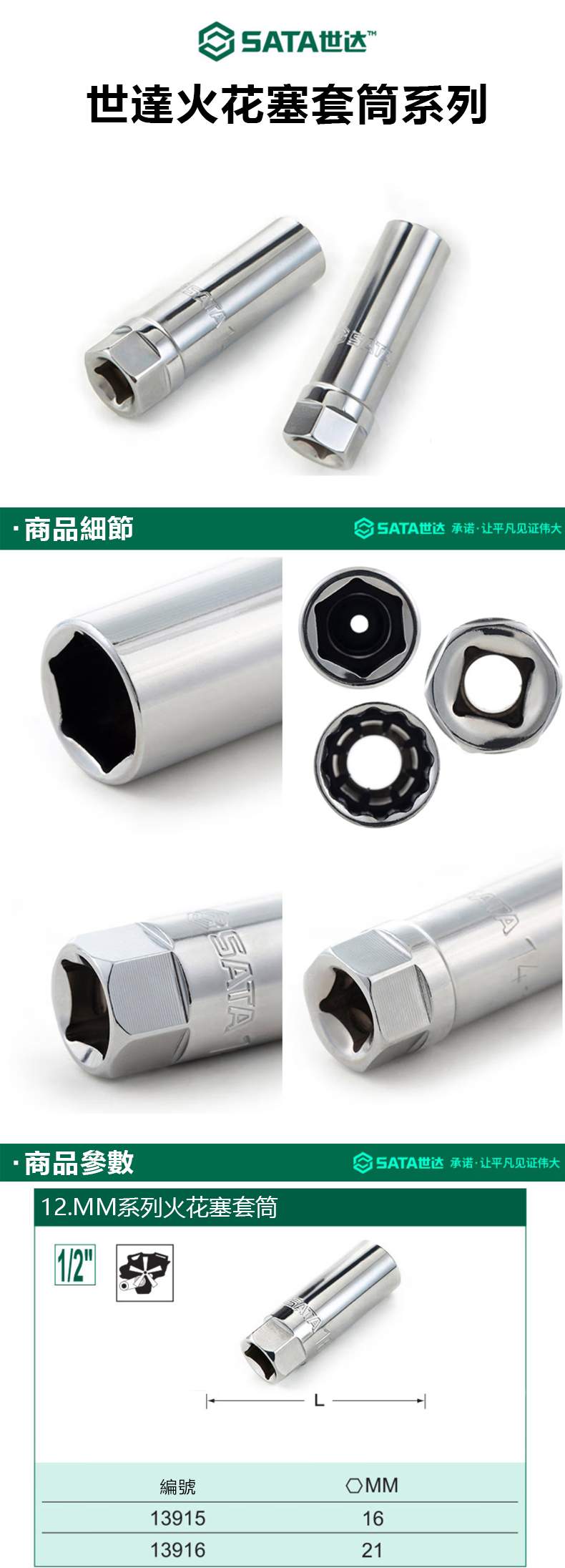 SATA|世達 12.5mm系列火花塞套筒 16mm ST13915SC