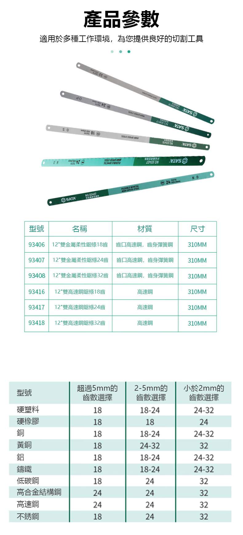 SATA|世達 高速鋼鋸條24齒 12" ST93417