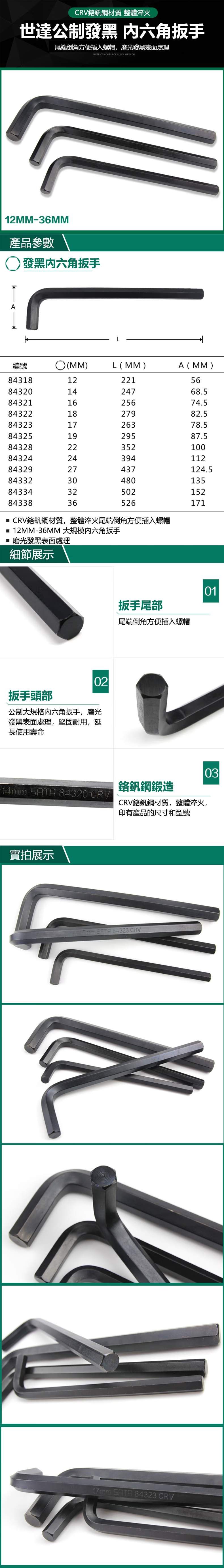 SATA|世達 發黑內六角扳手 12mm ST84318SC