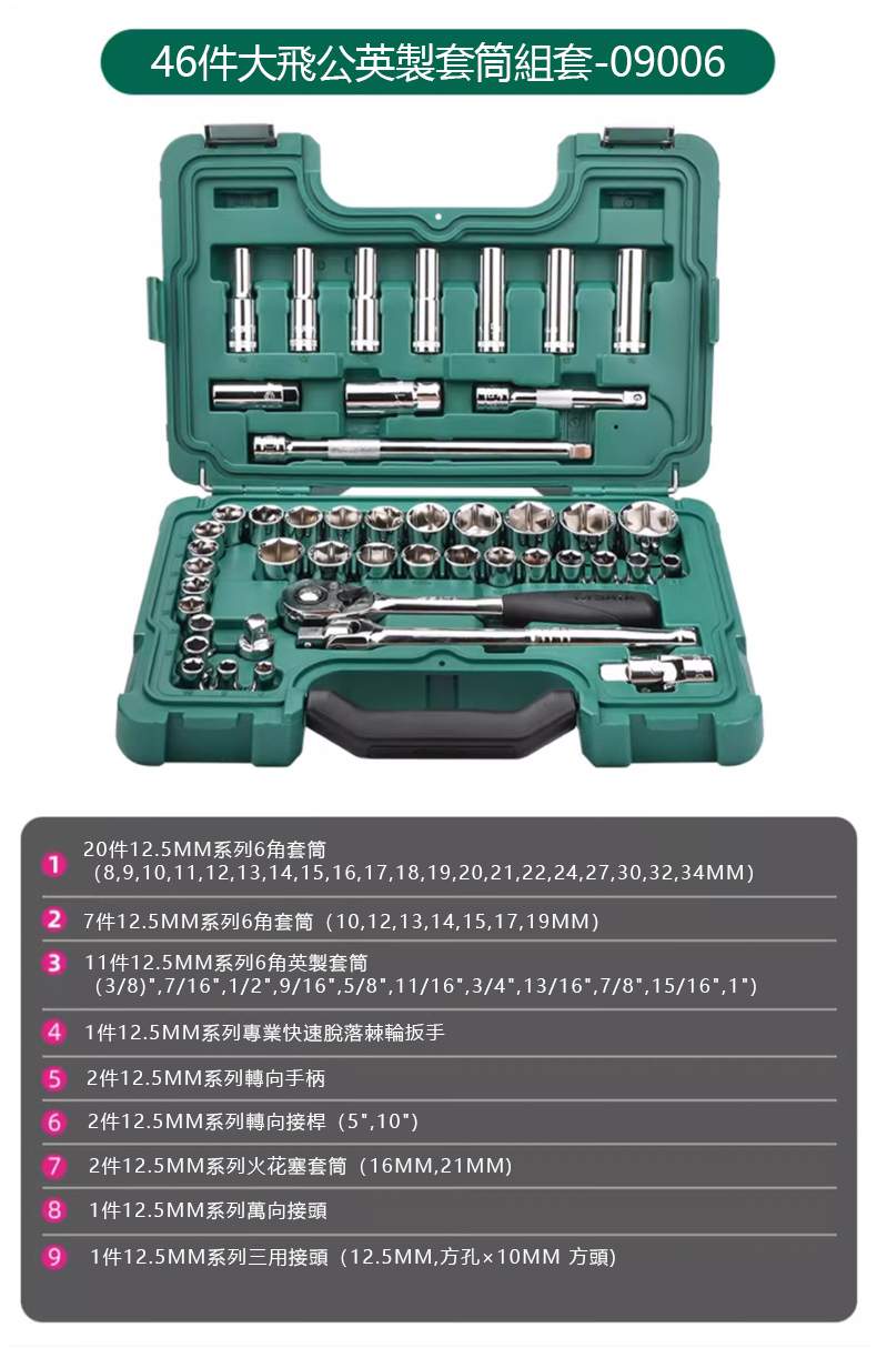 SATA|世達 12.5mm系列公英制套筒組套 46件 ST09006SJ