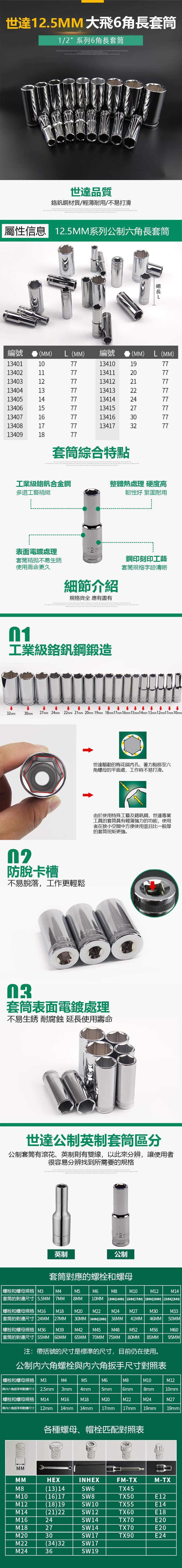 SATA|世達 12.5mm系列6角長套筒 30mm ST13416SC