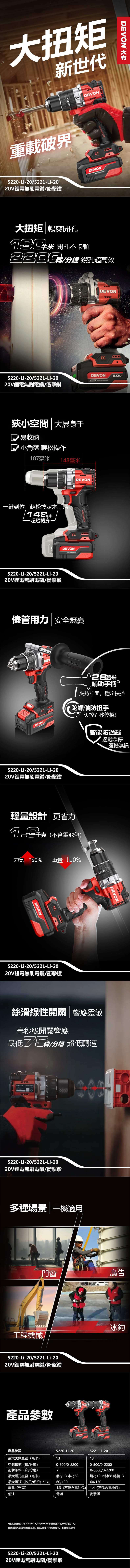 Devon|大有 20V無刷衝擊鑽淨機 5221Li-Z